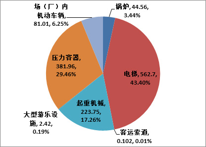 截至2017年底,全國特種設備總量達1296.52萬臺,比2016年底上升8.31%。其中:鍋爐44.56萬臺、壓力容器381.96萬臺、電梯562.7萬臺、起重機械223.75萬臺、客運索道1020條、大型游樂設施2.42萬臺(套)、場(廠)內機動車輛81.01萬臺。另有:氣瓶14265萬只、壓力管道45.09萬公里。